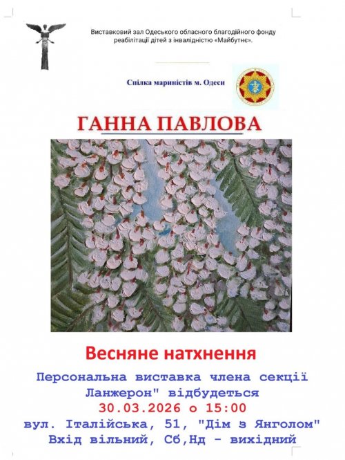 Персональна виставка члена секції «Ланжерон» відбудеться 30.03.2026 о 15:00.
