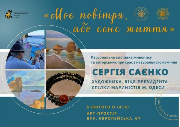 Персональна виставка Сергiя Саeнко Сьогодні, 09:15 1 Персональна виставка живопису та авторських прикрас з натурального камiння, Сергiя Саeнко