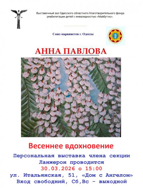 Персональная выставка члена секции «Ланжерон» проводится 30.03.2026 в 15:00.
